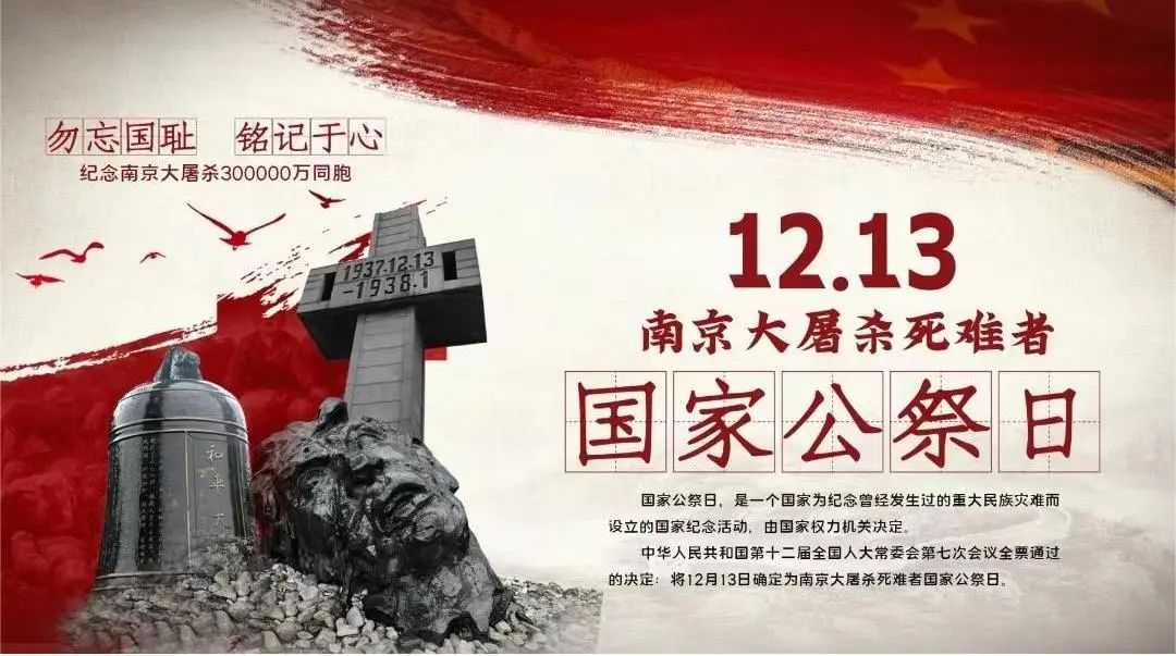 2014年12月13日,是——公祭日。習(xí)近平總書記在公祭日上講到:南京大屠殺慘案鐵證如山、不容篡改。為南京大屠殺死難者舉行公祭儀式,是要喚起每一個善良的人們對和平的向往和堅守,而不是要延續(xù)仇恨。中國人民要莊嚴(yán)昭告國際社會:今天的中國,是世界和平的堅決倡導(dǎo)者和有力捍衛(wèi)者,中國人民將堅定不移維護(hù)人類和平與發(fā)展的崇高事業(yè),愿同各國人民真誠團(tuán)結(jié)起來,