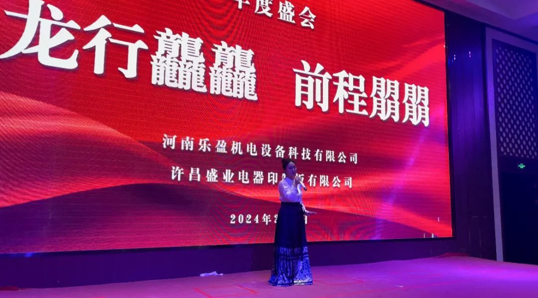 舊朝歲月隨風(fēng)逝,新載希望翹首來。2月7日,由河南樂盈機(jī)電設(shè)備科技有限公司及許昌盛業(yè)電器印制板有限公司成功舉辦了以“龍行龘龘 前程?hào)T朤”為主題的2024年度盛會(huì)。大家齊聚一堂,共同迎接甲辰龍年的到來。